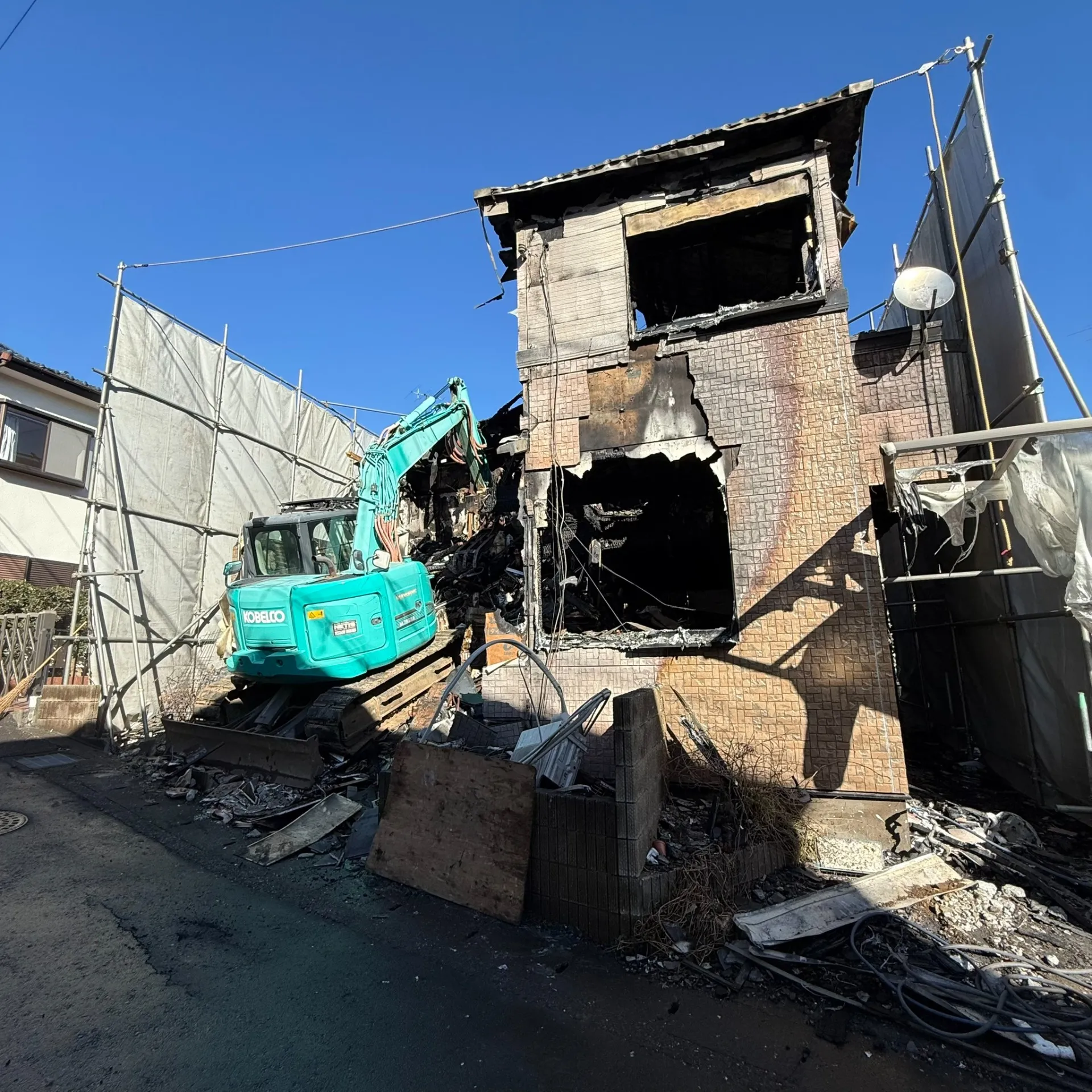 川崎市/宮前区/焼失木造解体工事/木造解体/足場